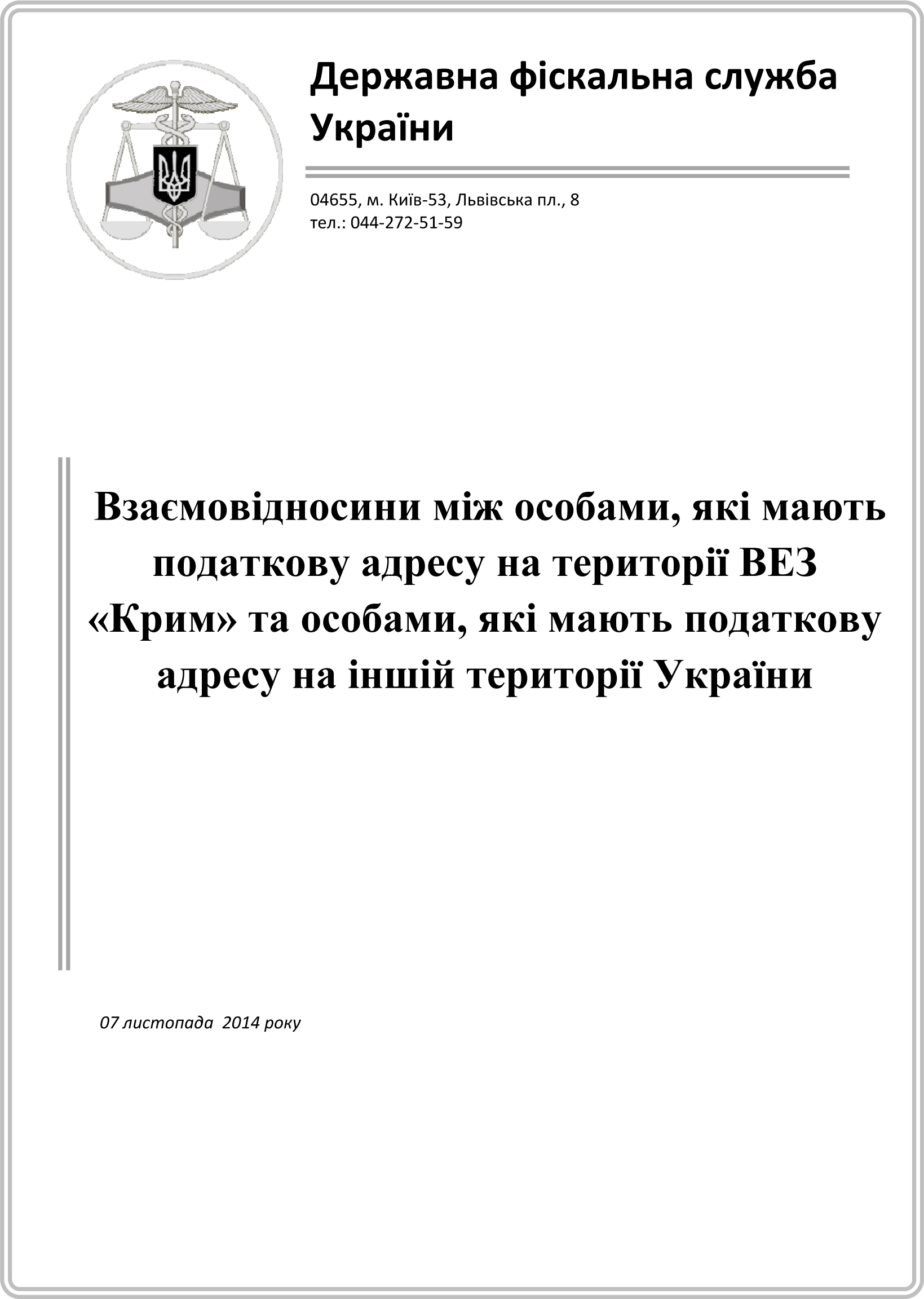 Листівка "Взаємовідносини між особами, які мають податкову адресу на території ВЕЗ «Крим» та особами, які мають податкову адресу на іншій території України