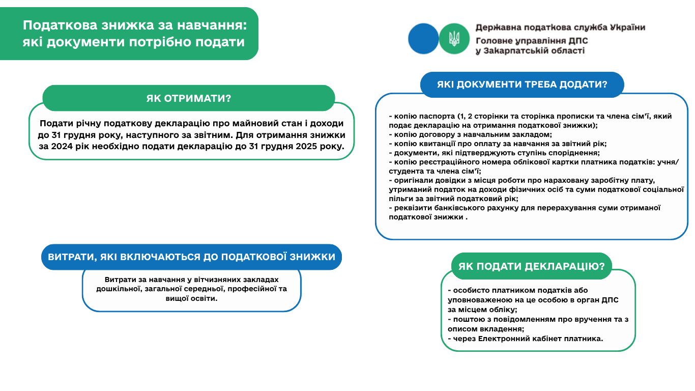 Податкова знижка за навчання: які документи потрібно подати