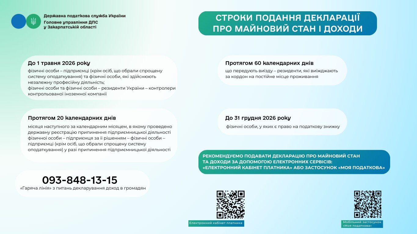 Строки подання декларації про майновий стан і доходи