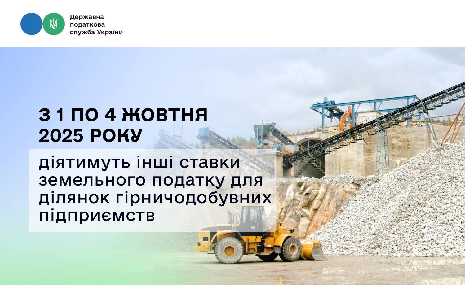 З 1 жовтня 2025 року змінюється порядок оподаткування земельних ділянок, наданих гірничодобувним підприємствам для видобування та розробки родовищ корисних копалин.