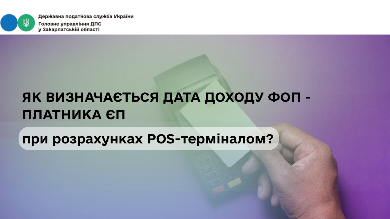 Фахівці ГУ ДПС у Закарпатській області інформують, як з метою оподаткування визначається дата отримання доходу ФОП – платником ЄП при здійсненні нею розрахунків за допомогою POS – терміналів.
