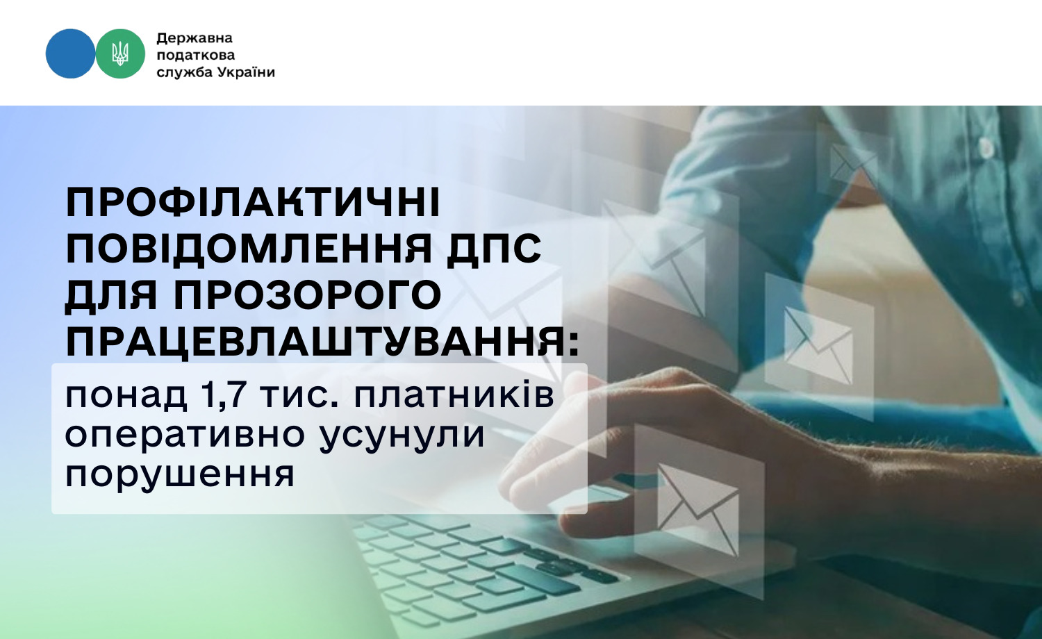 Профілактичні повідомлення ДПС для прозорого працевлаштування: понад 1,7 тис. платників оперативно усунули порушення