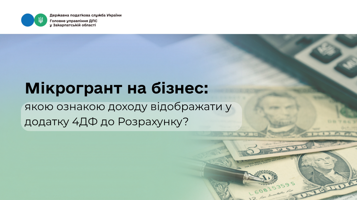 Мікрогрант на бізнес: за якою ознакою доходу відображати у додатку 4ДФ до Розрахунку?