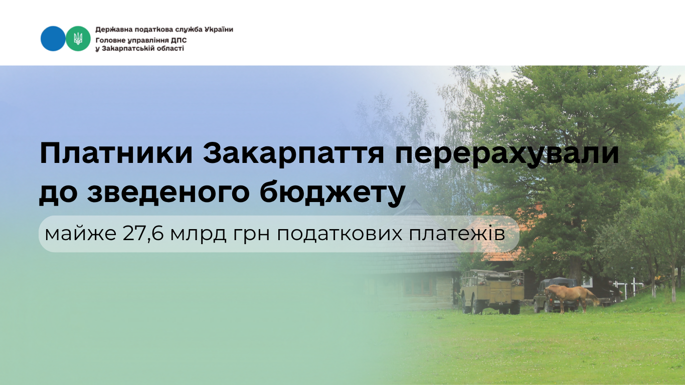 Упродовж 10 місяців 2025 року платники Закарпатської області сплатили до бюджетів усіх рівнів 27 млрд 574 млн грн податків та зборів, що на 51,8 %, або на 9 млрд 415 млн грн більше, ніж у аналогічному періоді 2024 року.