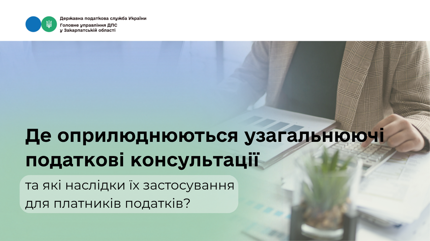 Узагальнююча податкова консультація – оприлюднення позиції центрального органу виконавчої влади, що забезпечує формування та реалізує державну фінансову політику, щодо практичного використання окремих норм податкового та іншого законодавства, контроль за дотриманням якого покладено на контролюючі органи, що склалася за результатами узагальнення індивідуальних податкових консультацій, наданих контролюючими органами платникам податків, та/або у разі виявлення обставин, що свідчать про неоднозначність окремих норм такого законодавства.