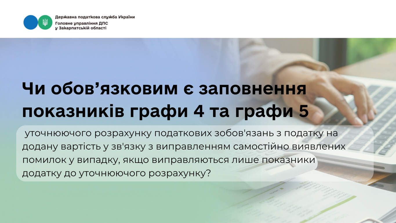 Податківці інформують, чи обов’язковим є заповнення показників графи 4 та графи 5 уточнюючого розрахунку податкових зобов'язань з податку на додану вартість у зв'язку з виправленням самостійно виявлених помилок у випадку, якщо виправляються лише показники додатку до уточнюючого розрахунку.
