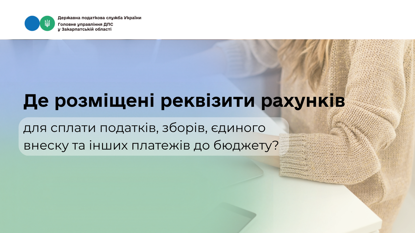 Головне управління ДПС у Закарпатській області  повідомляє , що  актуальні  реквізити  рахунків для сплати податків, зборів та платежів, відкритих Державною казначейською службою України розміщені на офіційному вебпорталі   ГУ ДПС у Закарпатській області або на вебпорталі ДПС за  посиланням: Головна/Рахунки для сплати платежів (https://tax.gov.ua/rahunki-dlya-splati-platejiv).
