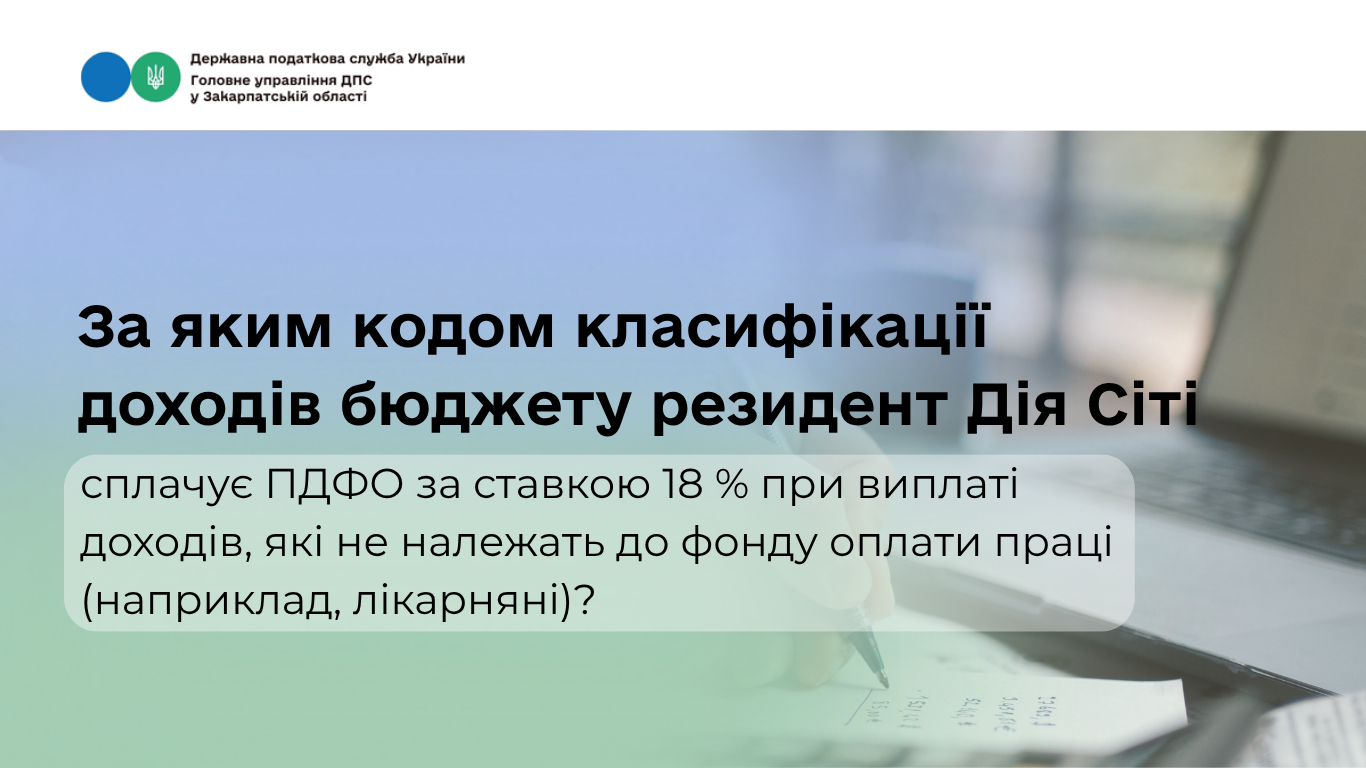 Враховуючи викладене, резидент Дія Сіті сплачує податок на доходи фізичних осіб за ставкою 18 відс. при виплаті доходів, які не належать до фонду оплати праці, за кодом класифікації доходів бюджету – 11010400.