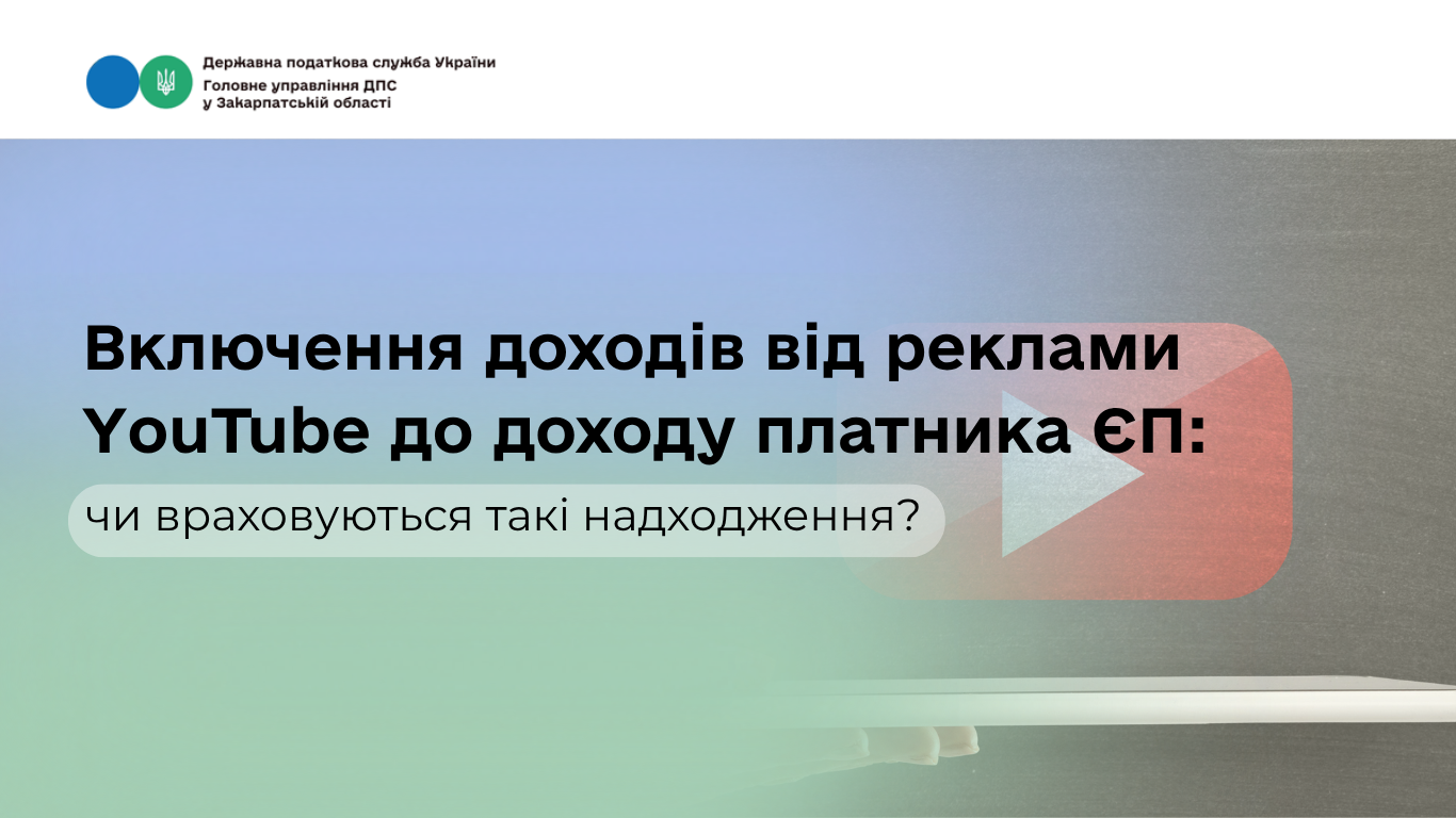 Фахівці ГУ ДПС у Закарпатській області інформують, чи включаються в дохід платника ЄП кошти, отримані від YouTube за рекламу, яка розміщується YouTube у відеоматеріалах, створених ФОП – платником ЄП, та яка пов’язана/не пов’язана з господарською діяльністю такої особи.