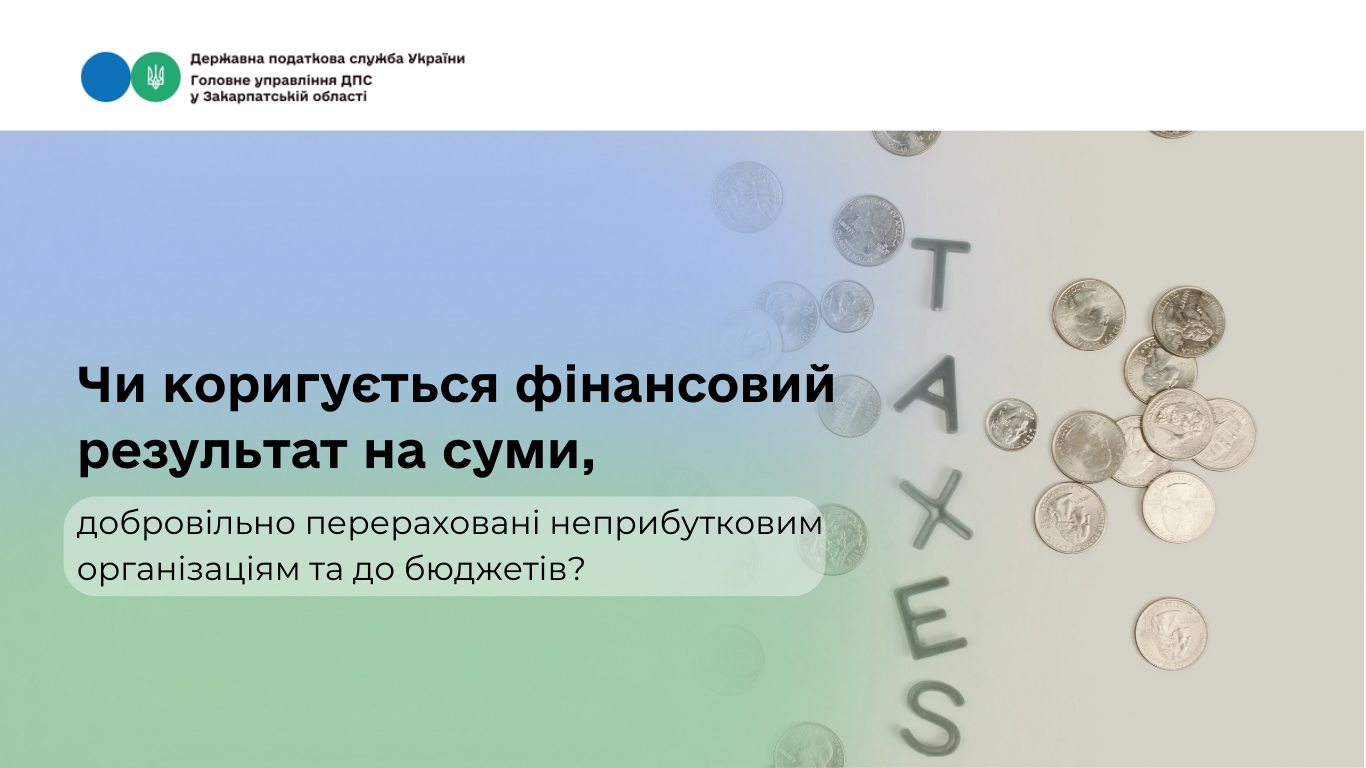 Податківці інформують, чи здійснюється коригування фінансового результату до оподаткування на суми коштів або вартість товарів (робіт, послуг), добровільно перерахованих (переданих) до неприбуткових організацій, до Державного бюджету України або бюджетів місцевого самоврядування.