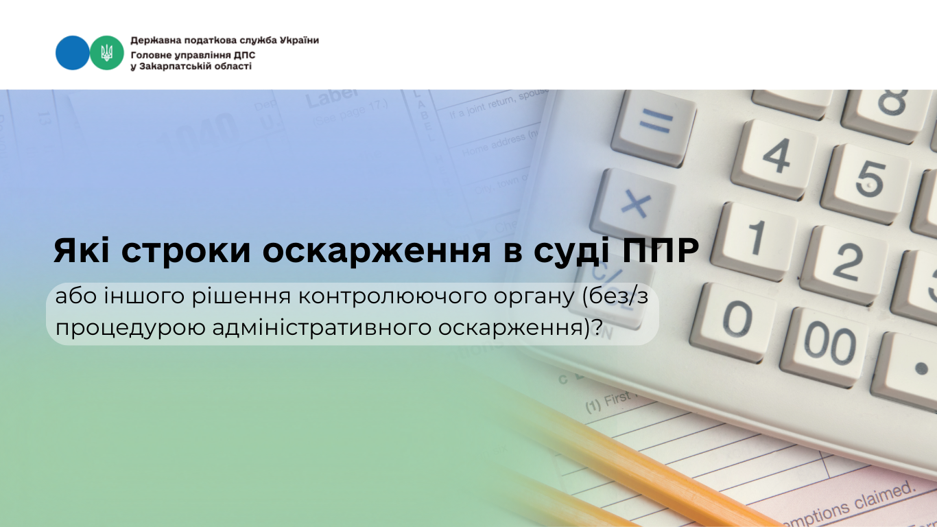 Які строки оскарження в суді ППР або іншого рішення контролюючого органу (без/з процедурою адміністративного оскарження)?