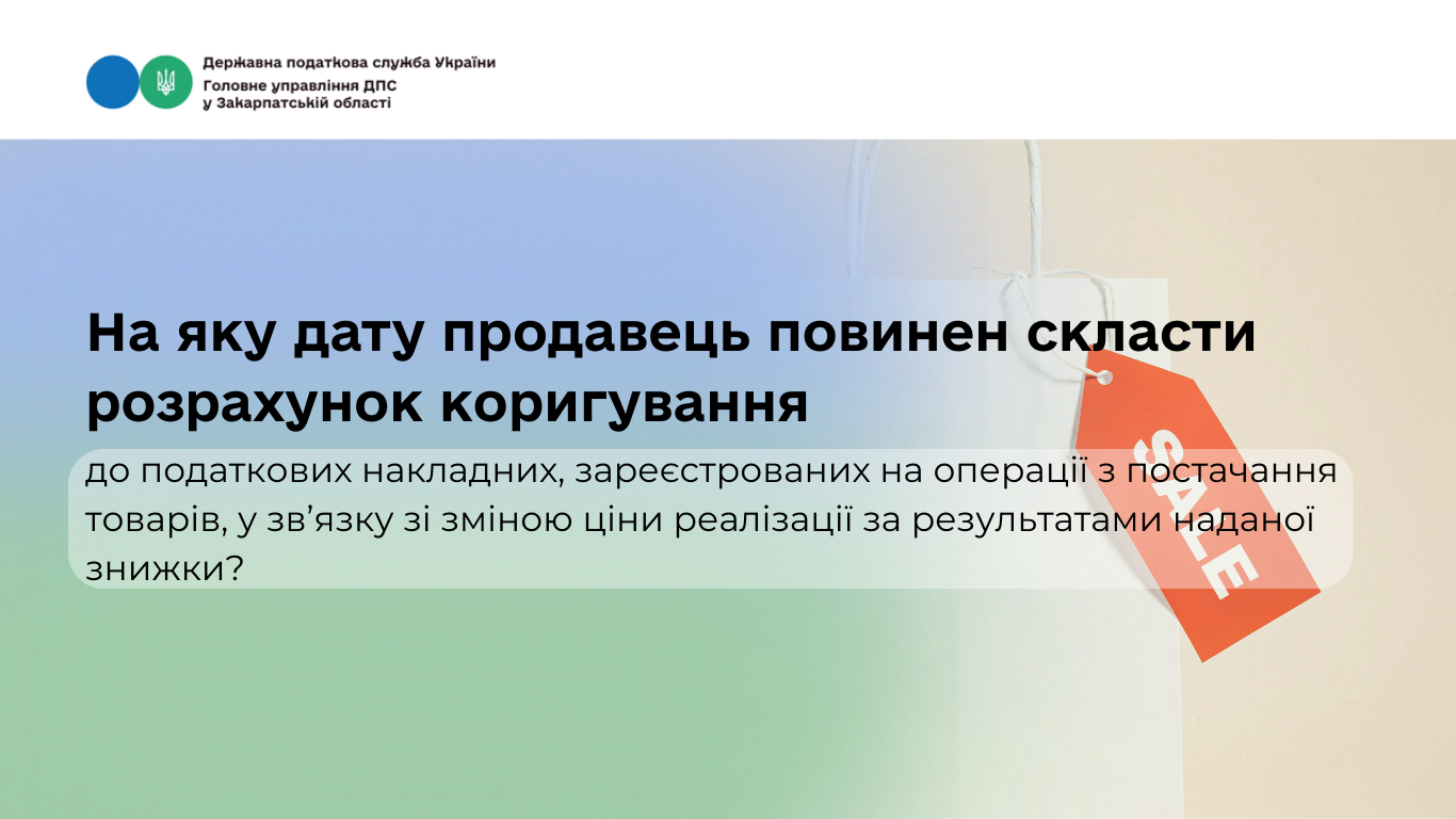 - На яку дату продавець повинен скласти розрахунок коригування до податкових накладних, зареєстрованих на операції з постачання товарів, у зв’язку зі зміною (зменшенням) ціни реалізації за результатами наданої знижки?