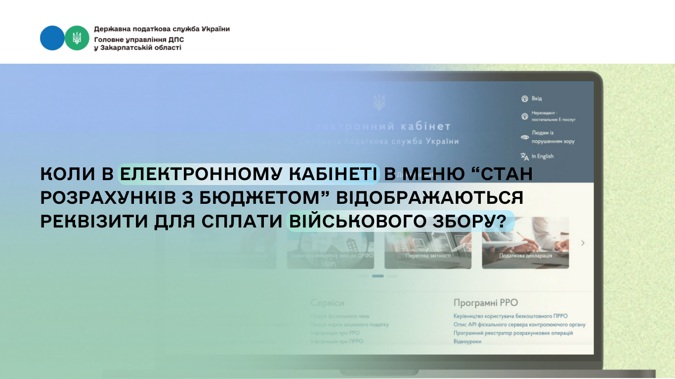 Коли в Електронному кабінеті в меню «Стан розрахунків з бюджетом» відображаються реквізити для сплати військового збору?