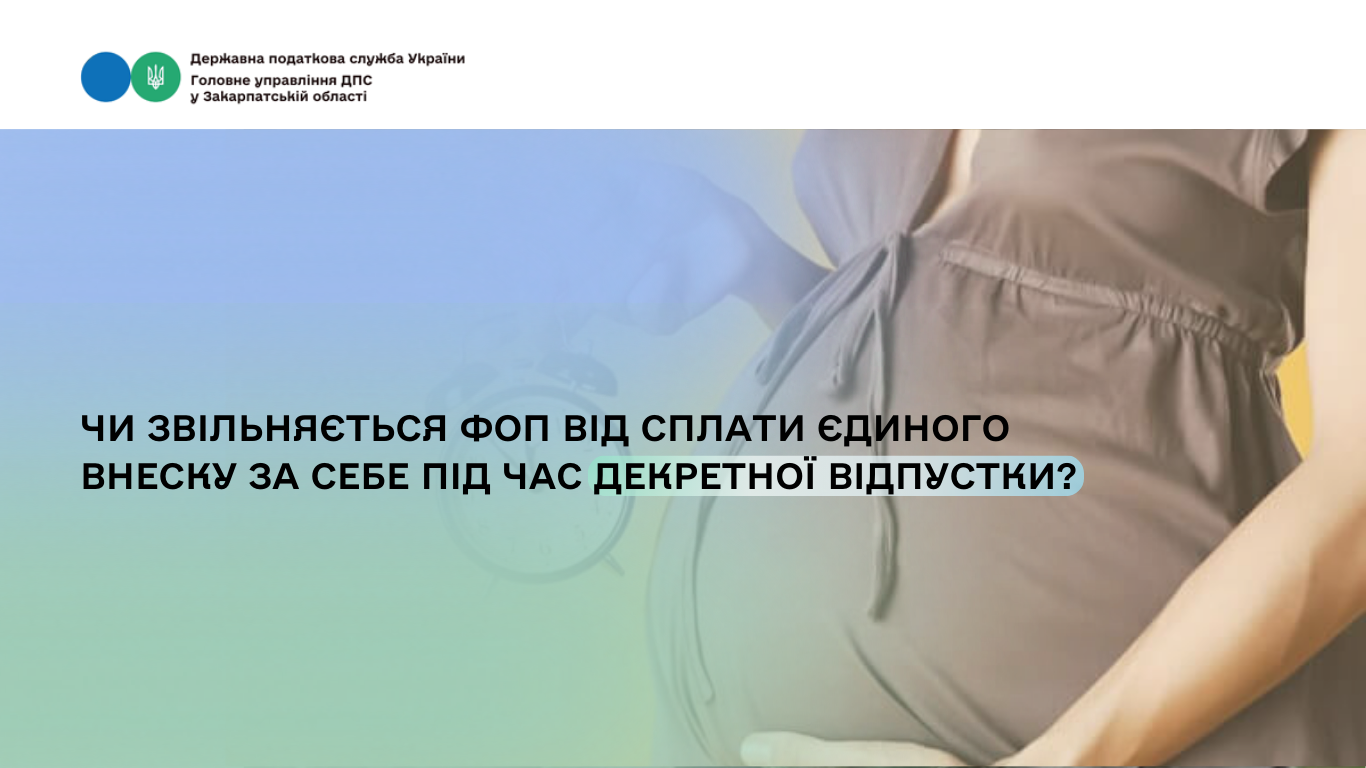 Фахівці ГУ ДПС у Закарпатській області повідомляють, чи звільняється від сплати єдиного внеску за себе ФОП, яка перебуває у відпустці у зв’язку з вагітністю та пологами та/або у відпустці по догляду за дитиною до досягнення нею трирічного віку, але продовжує здійснювати господарську діяльність і отримувати дохід, та чи потрібно повідомляти контролюючий орган про факт сплати за неї єдиного внеску роботодавцем.