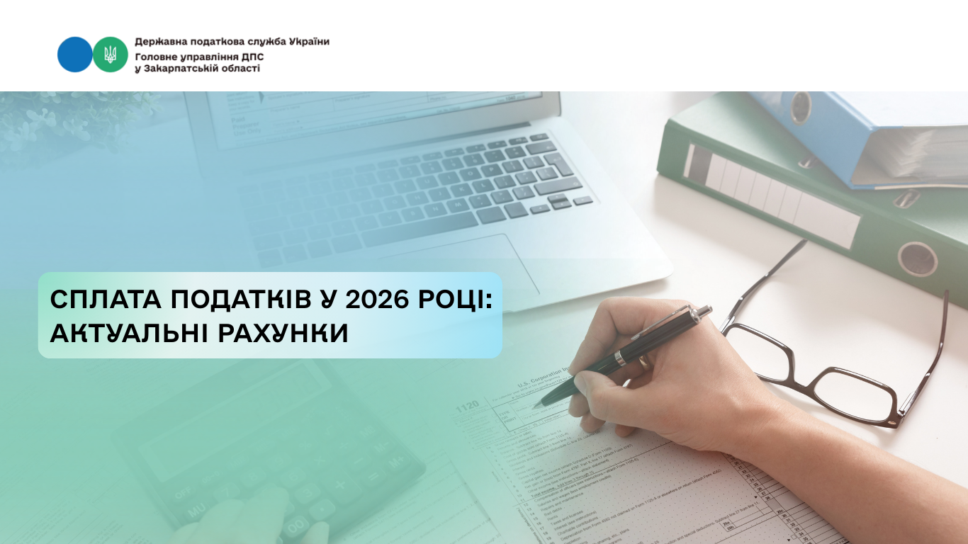 Головне управління ДПС у Закарпатській області інформує платників податків, що реквізити рахунків для сплати податків у 2026 році не змінилися, окрім рахунків за такими кодами класифікації доходів бюджету: