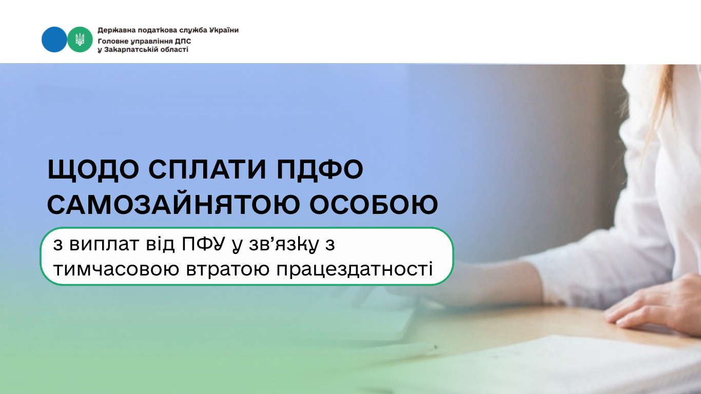 Податківці повідомляють платникам, за яким кодом бюджетної класифікації сплачується ПДФО самозайнятою особою, яка отримала виплати пов’язані з тимчасовою втратою працездатності від ПФУ.