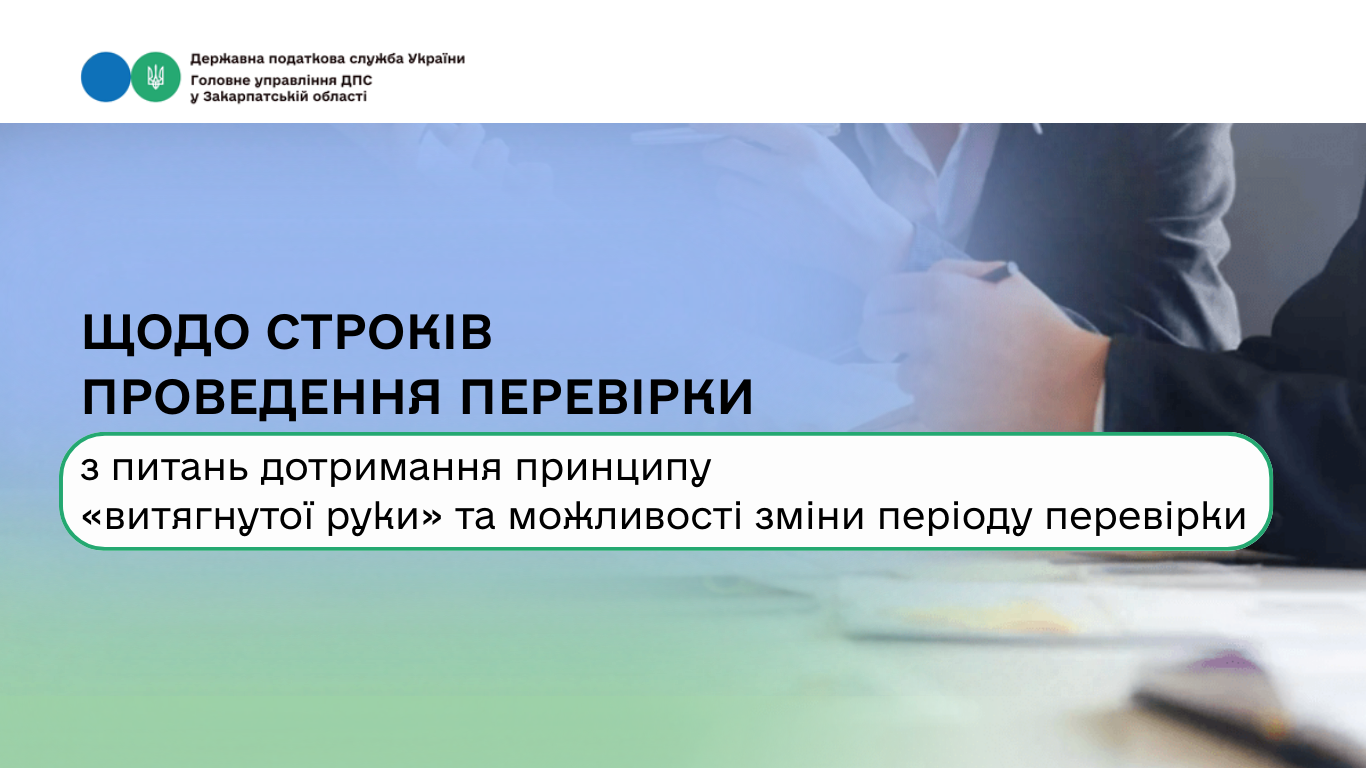 Фахівці ГУ ДПС у Закарпатській області інформують, який термін та особливості проведення перевірки з питань дотримання принципу «витягнутої руки», та чи можна за бажанням платника податків змінити (збільшити) період, визначений у наказі на проведення такої перевірки.