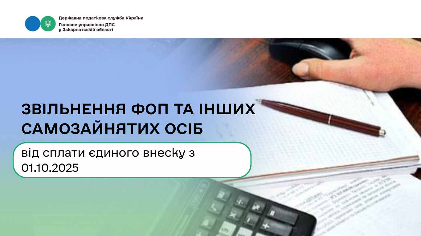 Звільнення ФОП та інших самозайнятих осіб від сплати єдиного внеску з 01.10.2025