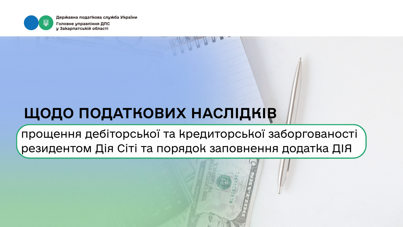 Фахівці ГУ ДПС у Закарпатській області роз’яснюють, які податкові наслідки для резидента Дія Сіті – платника податку на особливих умовах при прощенні дебіторської та кредиторської заборгованості, як при цьому заповнюється Додаток ДІЯ до Податкової декларації з податку на прибуток підприємств.