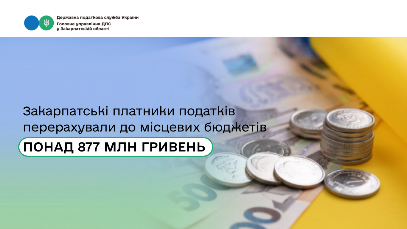 Закарпатські платники податків перерахували до місцевих бюджетів понад 877 млн гривень