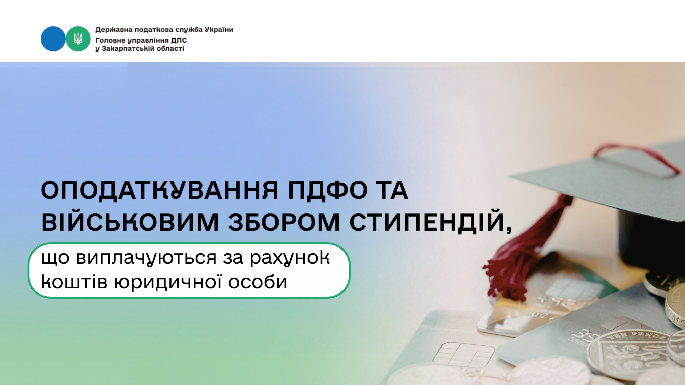 Фахівці ГУ ДПС у Закарпатській області роз’яснюють, чи підлягає оподаткуванню ПДФО та військовим збором сума стипендії, яка виплачується учню, студенту, курсанту військових навчальних закладів, ординатору, аспіранту або ад’юнкту за рахунок коштів юридичної особи відповідно до угоди, укладеної між навчальним закладом та ЮО.