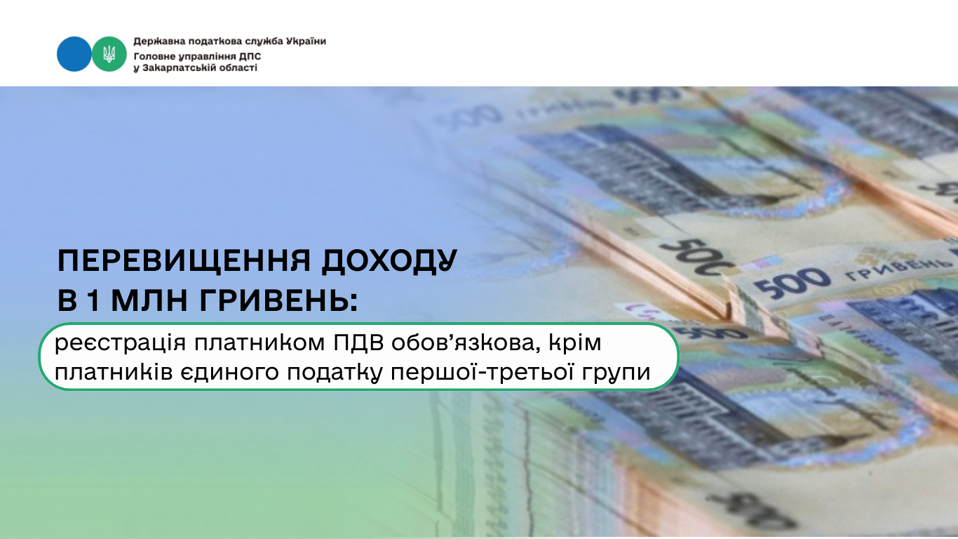 Перевищення доходу в 1 млн гривень: реєстрація платником ПДВ обов’язкова, крім платників єдиного податку першої – третьої групи
