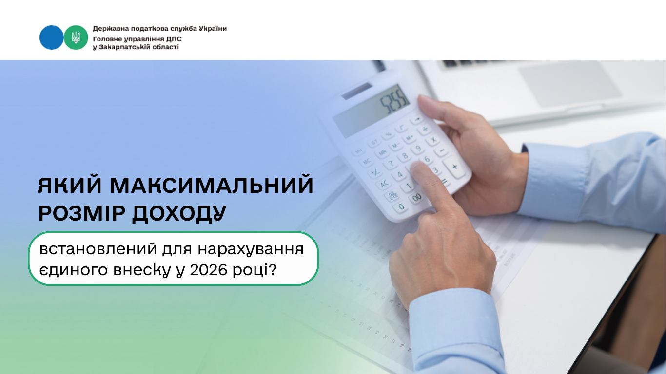 Статтею 32 Закону України від 03 грудня 2025 року № 4695-IX «Про Державний бюджет України на 2026 рік» установлено, що у 2026 році розмір максимальної величини бази нарахування єдиного внесок на загальнообов’язкове державне соціальне страхування (далі – єдиний внесок) – максимальної суми доходу застрахованої особи на місяць, на яку нараховується єдиний внесок, визначеної Законом України від 08 липня 2010 року № 2464-VI «Про збір та облік єдиного внеску на загальнообов’язкове державне соціальне страхування», дорівнює: