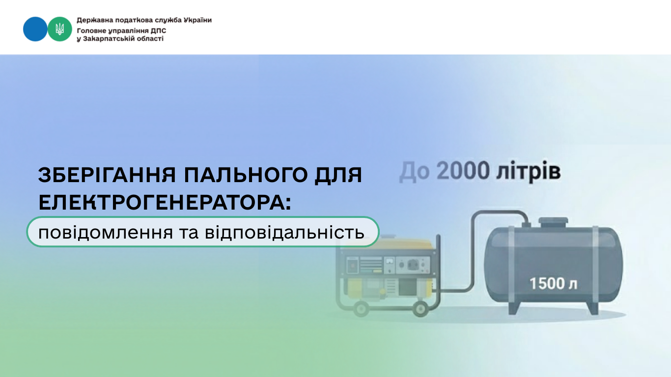 Податківці звертають увагу платників на те, чи зобов’язані СГ повідомляти контролюючий орган про зберігання пального, яке споживається для заправлення електрогенераторної установки в обсязі до 2000 літрів, та чи є таке зберігання підставою для застосування відповідальності за зберігання пального без ліцензії.