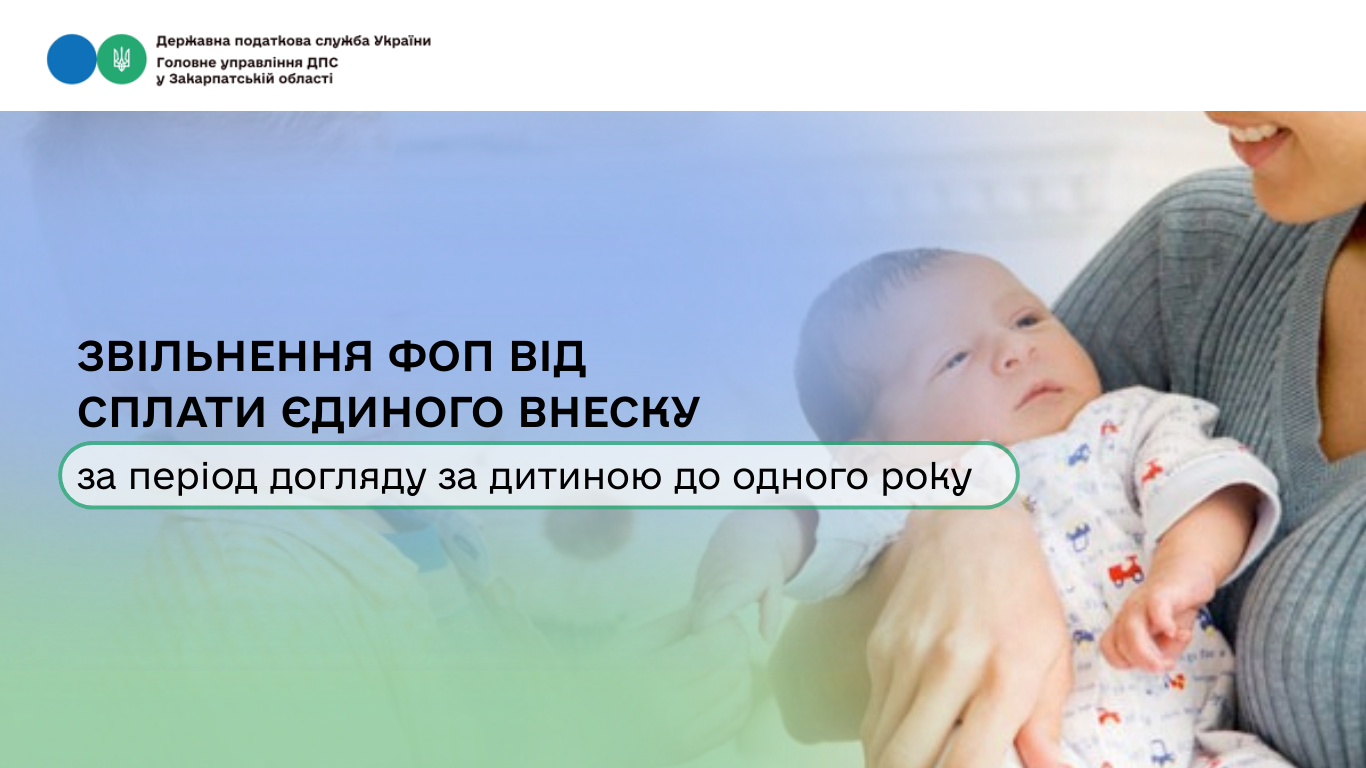 Фахівці ГУ ДПС у Закарпатській області роз’яснюють, чи звільняється від сплати єдиного внеску за себе ФОП, яка здійснює догляд за дитиною до досягнення нею однорічного віку та відповідно до закону отримує допомогу для догляду за дитиною до досягнення нею однорічного віку.