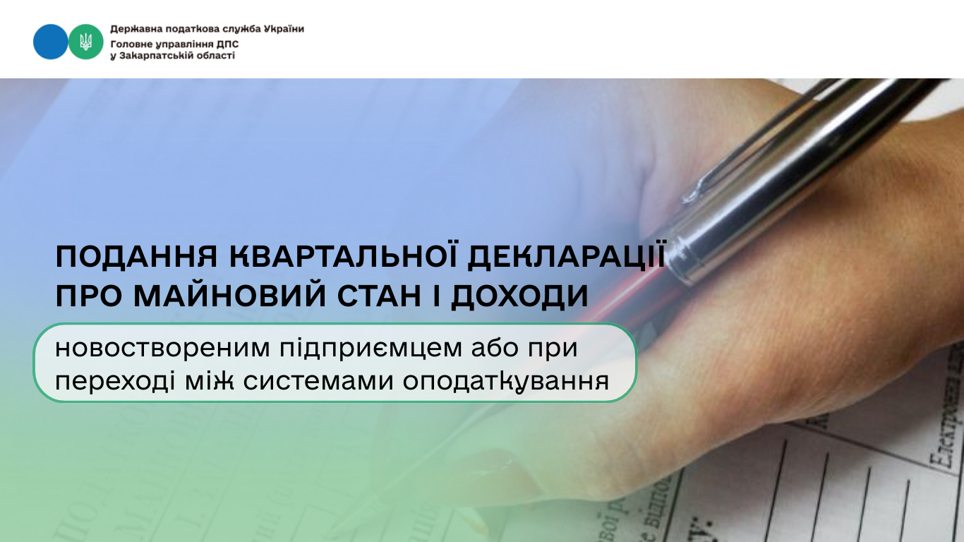 Податківці інформують, чи необхідно подавати квартальну податкову декларацію про майновий стан і доходи новоствореній ФОП або ФОП, яка перейшла із/на спрощену систему оподаткування.