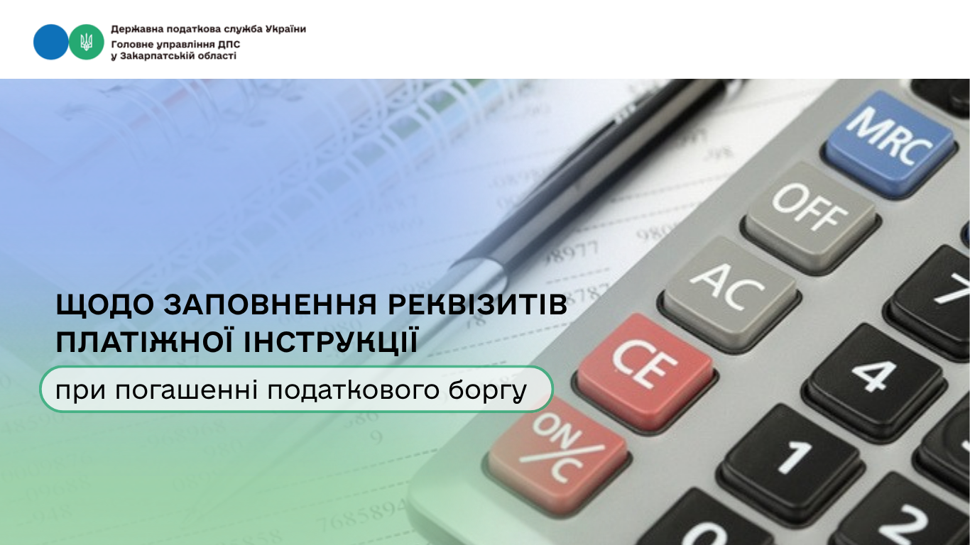 Фахівці ГУ ДПС у Закарпатській області роз’яснюють, в якому реквізиті платіжної інструкції вказується РНОКПП або ЄДРПОУ платника податків, податковий борг (крім єдиного внеску) якого погашається іншою ЮО, ФОП або ФО, з метою рознесення сплаченої суми до інтегрованої картки боржника.