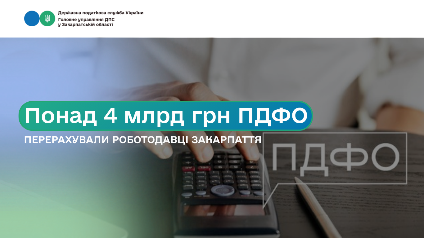 Упродовж січня–березня 2026 року з доходів працівників Закарпаття податкові агенти утримали та перерахували до зведеного бюджету понад 4 млрд 508 млн грн податку на доходи фізичних осіб.