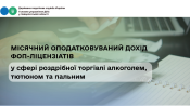 Податківці інформують, який розмір має становити загальний місячний оподатковуваний дохід СГ, зареєстрованого як ФОП, що не має найманих працівників, для ліцензіатів, що отримали ліцензію на право роздрібної торгівлі алкогольними напоями, сидром та перрі (без додавання спирту), тютюновими виробами, рідинами, що використовуються в електронних сигаретах, пальним.