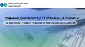 Платники податків, які є користувачами Електронного кабінету, мають можливість за допомогою меню «Введення звітності» приватної частини Електронного кабінету надіслати заяву та документи для отримання ліцензії на право виробництва, оптової та роздрібної торгівлі алкогольними напоями, тютюновими виробами, рідинами, що використовуються в електронних сигаретах, та пального, зберігання пального.