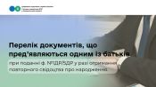 Перелік документів, що пред'являються одним з батьків при поданні ф. №1ДР/5ДР у разі отримання повторного свідоцтва про народження