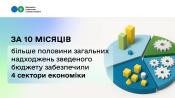За 10 місяців більше половини загальних надходжень зведеного бюджету забезпечили 4 сектори економіки. Про це на своїй сторінці у Facebook повідомила в. о. Голови Державної податкової служби України Леся Карнаух.