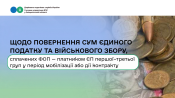 Щодо повернення сум єдиного податку та військового збору, сплачених ФОП - платиком ЄП першої-третьої груп у період мобілізації або дії контракту