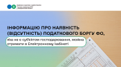 Фізична особа – громадянин, яка не є суб’єктом господарювання та є користувачем Електронного кабінету, для отримання інформації про наявність (відсутність) у неї податкового боргу (заборгованість) може скористатись сервісами «Електронного кабінету».