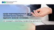 Фахівці ГУ ДПС в Закарпатській області роз’яснюють, чи застосовується відповідальність до осіб, які провадять незалежну професійну діяльність, за несвоєчасну сплату (несвоєчасне перерахування) єдиного внеску, якщо за наслідками звітного кварталу ними сплачено єдиний внесок в розмірі мінімального страхового внеску за кожен місяць, у якому отримано дохід (прибуток), але менше ніж з розміру чистого доходу, визначеного за такий квартал згідно з даними Типової форми, за якою здійснюється облік доходів і витрат.