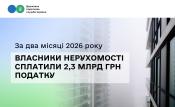 Упродовж січня – лютого 2026 року власники нерухомості перерахували до місцевих бюджетів 2,3 млрд грн податку на нерухоме майно, відмінне від земельної ділянки. Це на 14 % більше, ніж за аналогічний період минулого року.